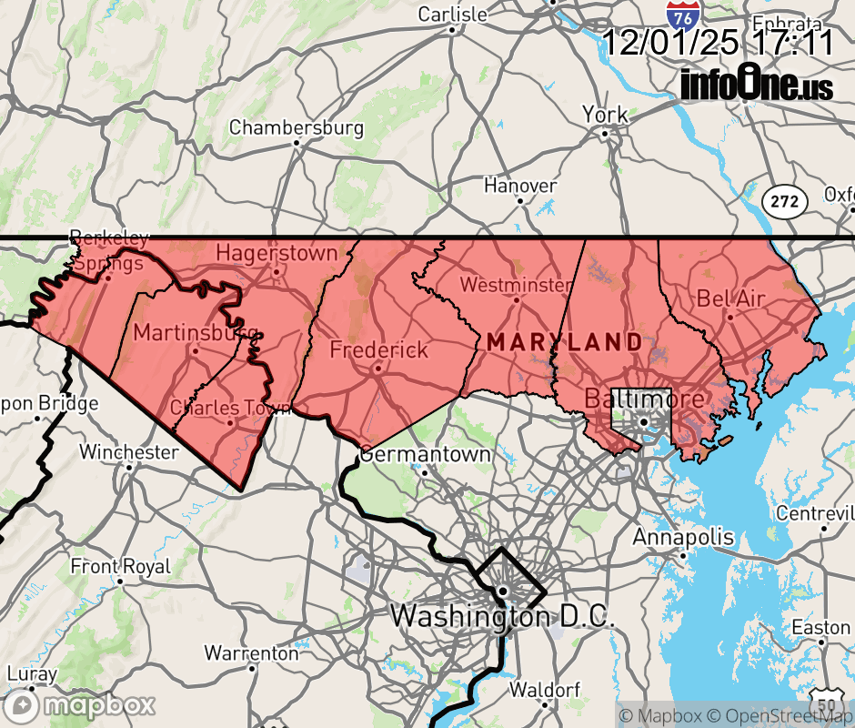 Canceled 12/1/25 10:49 PM Winter Weather Advisory issued December 1 at 5:10PM EST until December 2 at 1:00PM EST by NWS Baltimore MD/Washington DC ...FIRST WIDESPREAD WINTER EVENT OF THE SEASON... .Precipitation is expected to overspread the area after midnight tonight from southwest to northeast. While precipitation is likely to start as snow areawide, it is expected to mix with and change to sleet and freezing rain for most of the area. Locations along and south of US-50/I-66 likely end the event as rain as temperatures warm through the morning. Areas along the Mason-Dixon Line are most likely to remain all snow through the event, but that remains uncertain given exact low track. The Tuesday morning commute could be impacted for all areas in the Winter Weather Advisory. Updates to the forecast are likely, so please remain weather aware for the first widespread winter event of the season. * WHAT... Mixed precipitation expected. Total snow and sleet accumulations of 1 to 2 inches, with locally higher amounts upwards of 4 inches possible near the Mason-Dixon Line and higher elevations such as Parr's Ridge. Ice accumulations up to one tenth of an inch. * WHERE... Portions of north central and northern Maryland and panhandle West Virginia. * WHEN... From 3 AM to 1 PM EST Tuesday. * IMPACTS... Plan on slippery road conditions. The hazardous conditions could impact the Tuesday morning commute. * ADDITIONAL DETAILS... Precipitation is expected to overspread the area after midnight tonight. Precipitation is expected to start as snow before mixing with sleet and freezing rain. Should precipitation stay all snow or snow for a longer period of time, locally higher snowfall amounts would be possible. ![]() |
