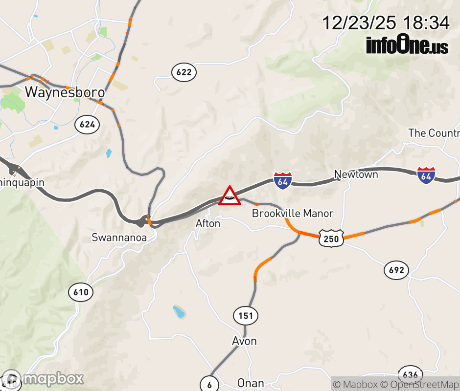 On I-64 West at mile marker 101.4 in the County of Albemarle, motorists can expect delays due to a multi-vehicle crash. Updated: Tue 12/23/25 6:34 PM EST ![]() Updated: Tue 12/23/25 6:34 PM EST |