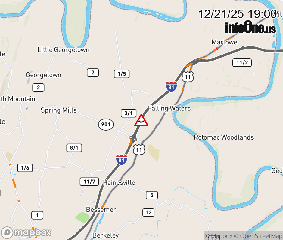 Canceled 12/21/25 9:08 PM Location: I-81 at MM 21.0, WV Accident.