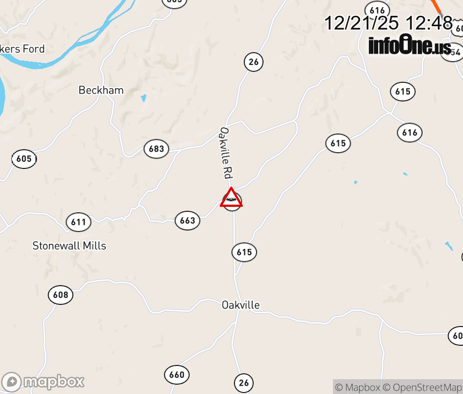 On VA-26 North in the County of Appomattox, in the vicinity of Oak Ridge Rd; Skyline Rd; Rt. 663E/W (Appomattox County), motorists can expect delays due to a vehicle crash. Lane closures exist. ![]() |