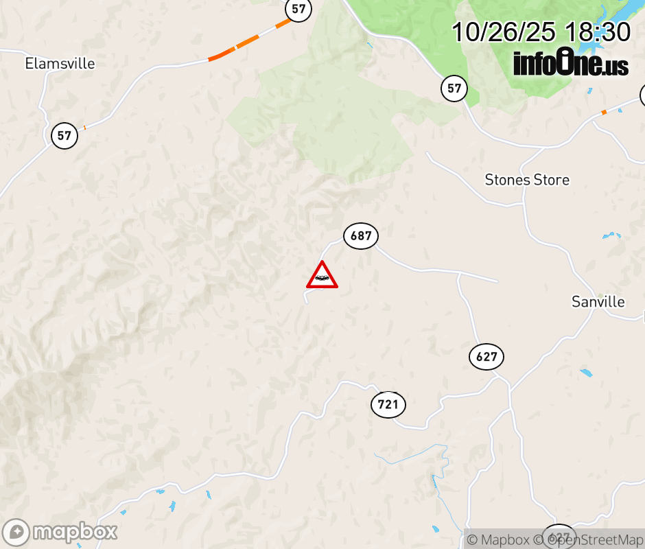 On Rt. 687 in the County of Patrick, in the vicinity of Pleasant View Dr; Rt. 702N/S (Patrick County), motorists can expect delays due to a vehicle crash. All north lanes are closed. All south lanes are closed. ![]() |