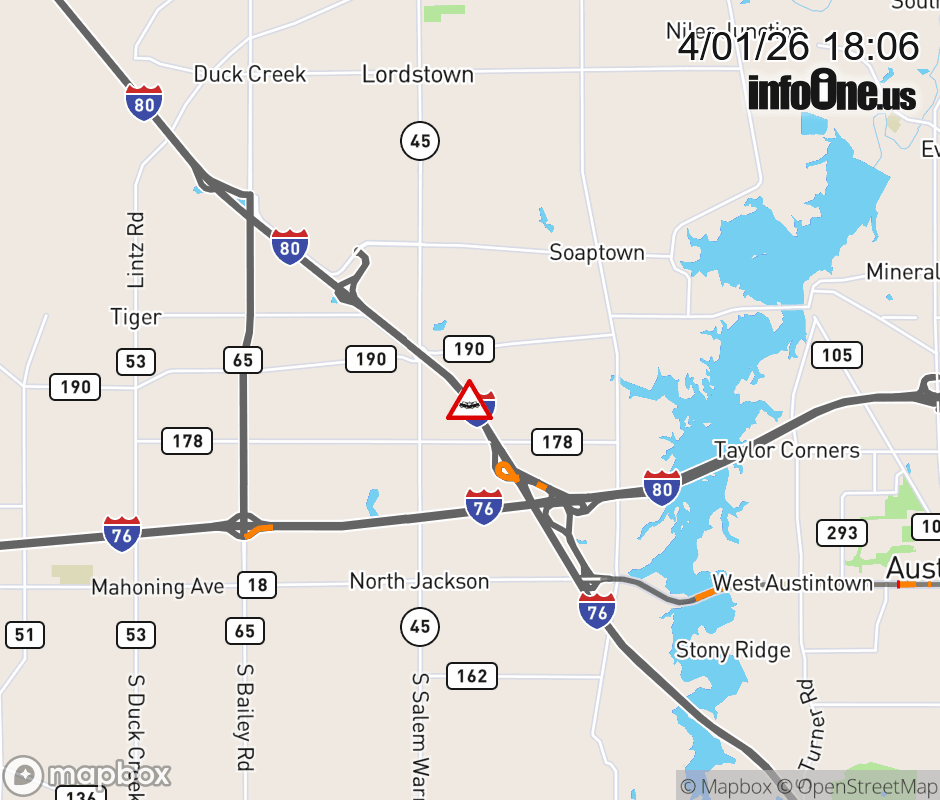 Expect lane closures on I-80 West (Ohio Turnpike) beyond I-76, due to a crash. ![]() |