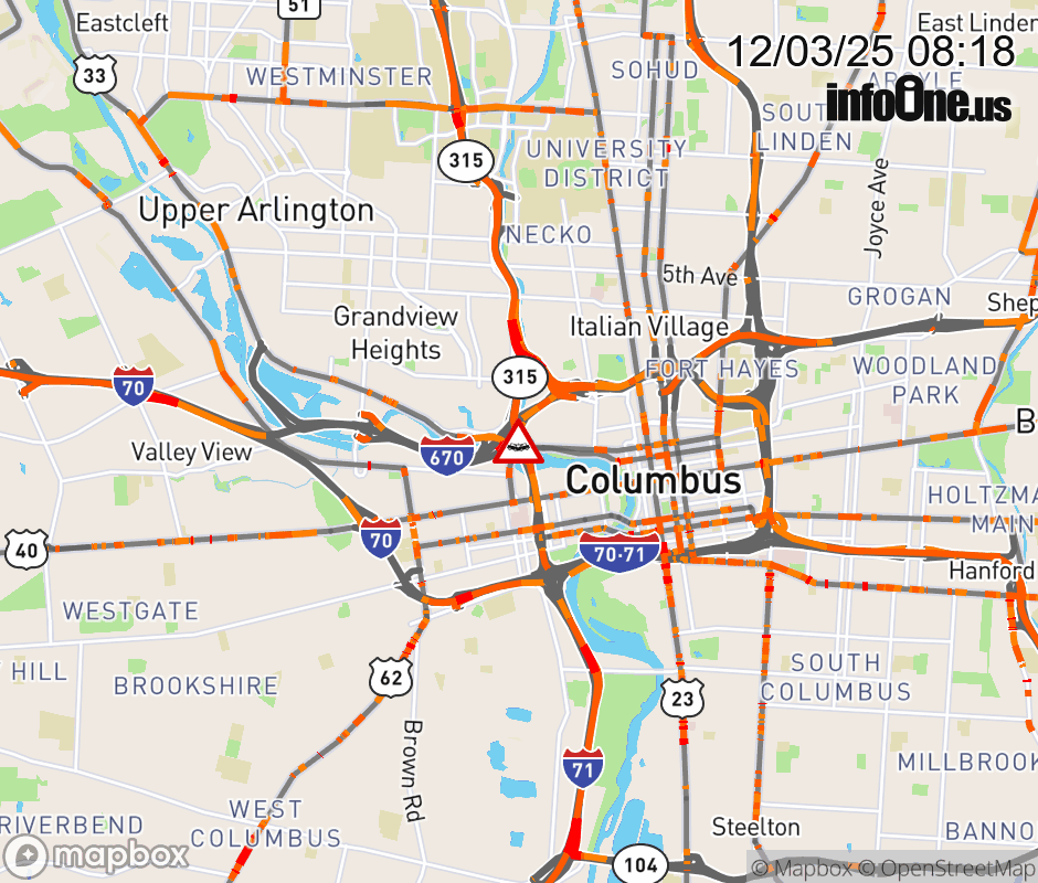The left lane is blocked on SR-315 North at I-670 East, due to a crash. ![]() |