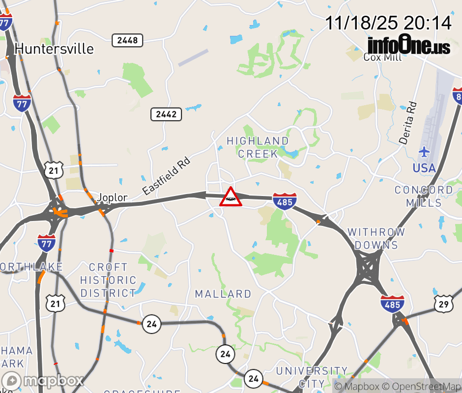 The right shoulder is closed past Exit 26 (Mallard Creek Road). Updated: Tue 11/18/25 8:14 PM EST ![]() Updated: Tue 11/18/25 8:14 PM EST |