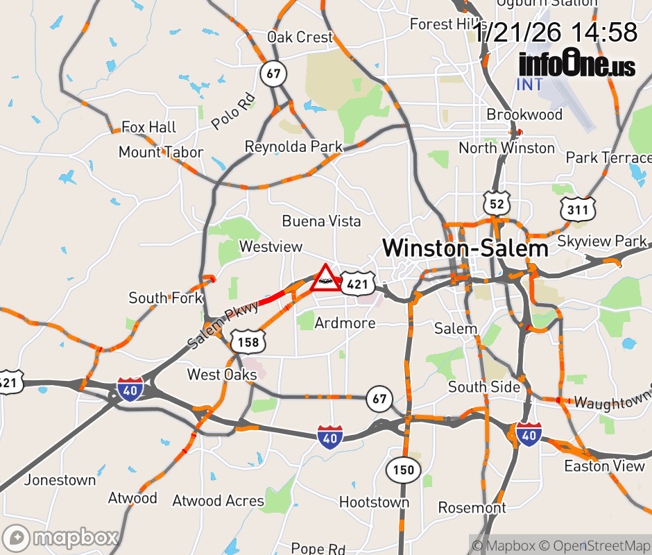 The 2 right lanes are closed at exit 235 (Stratford Rd). ![]() Updated: Wed 1/21/26 2:58 PM EST |
