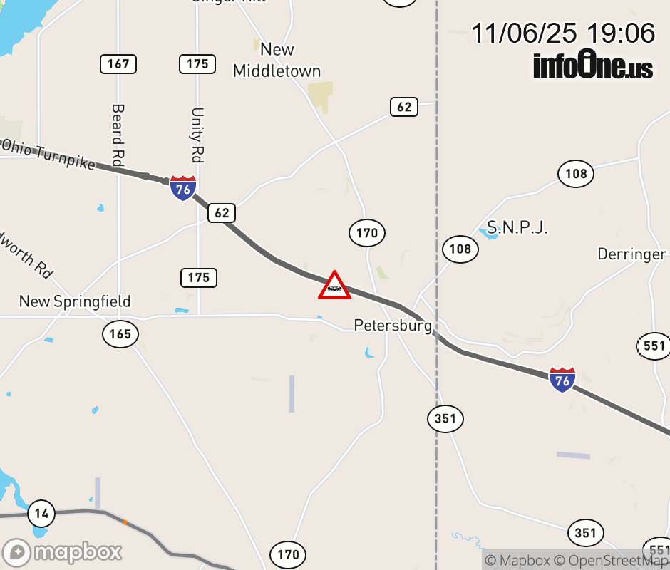 Expect lane closures on I-76 East (Ohio Turnpike) beyond SR-7, due to a crash. ![]() |