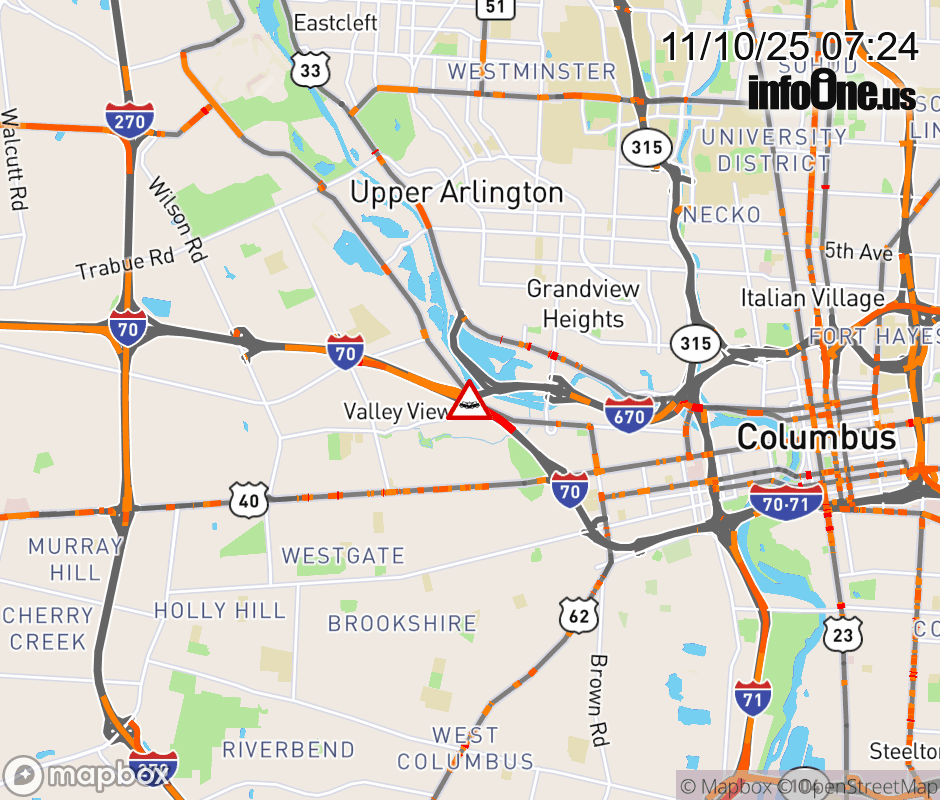 The left shoulder is blocked on I-70 West beyond US-40/ W Broad St, due to a crash. ![]() |