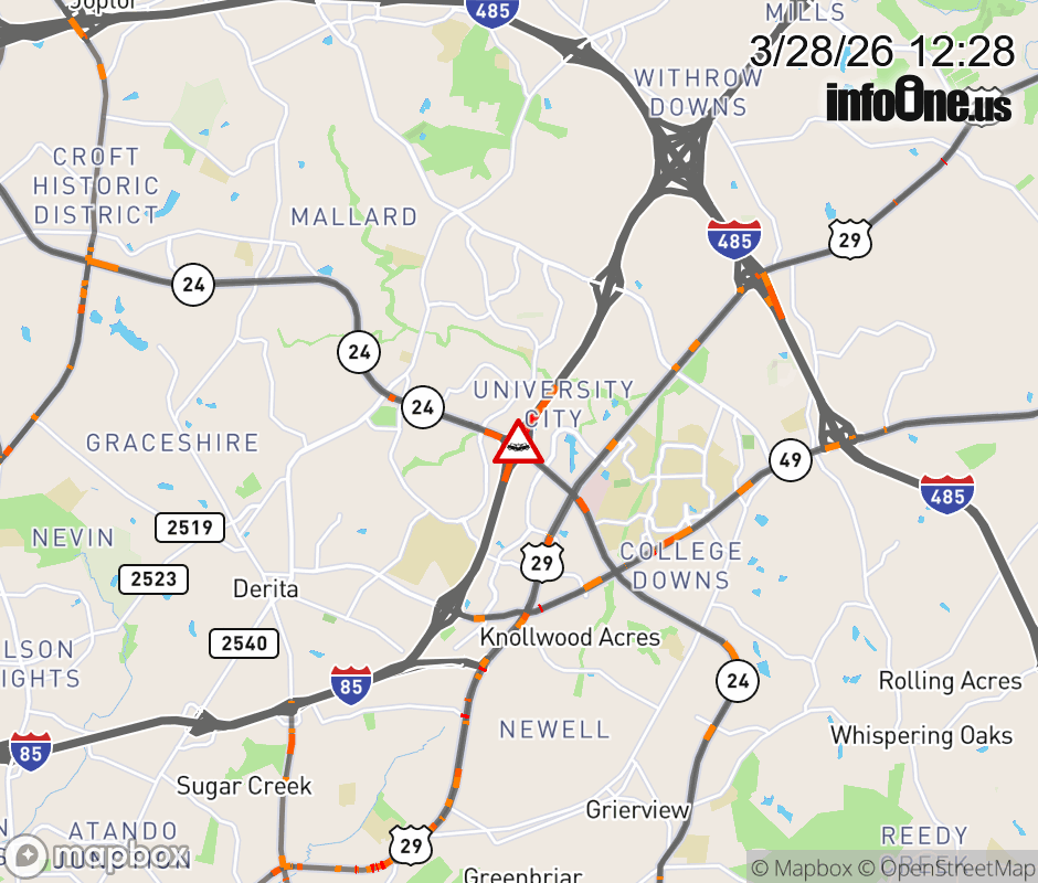 Location: I-85N at MM 45, NC Vehicle Crash.