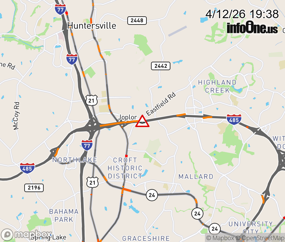 The right lane is closed near Exit 39 C (NC 115). Updated: Sun 4/12/26 7:38 PM EDT ![]() Updated: Sun 4/12/26 7:38 PM EDT |