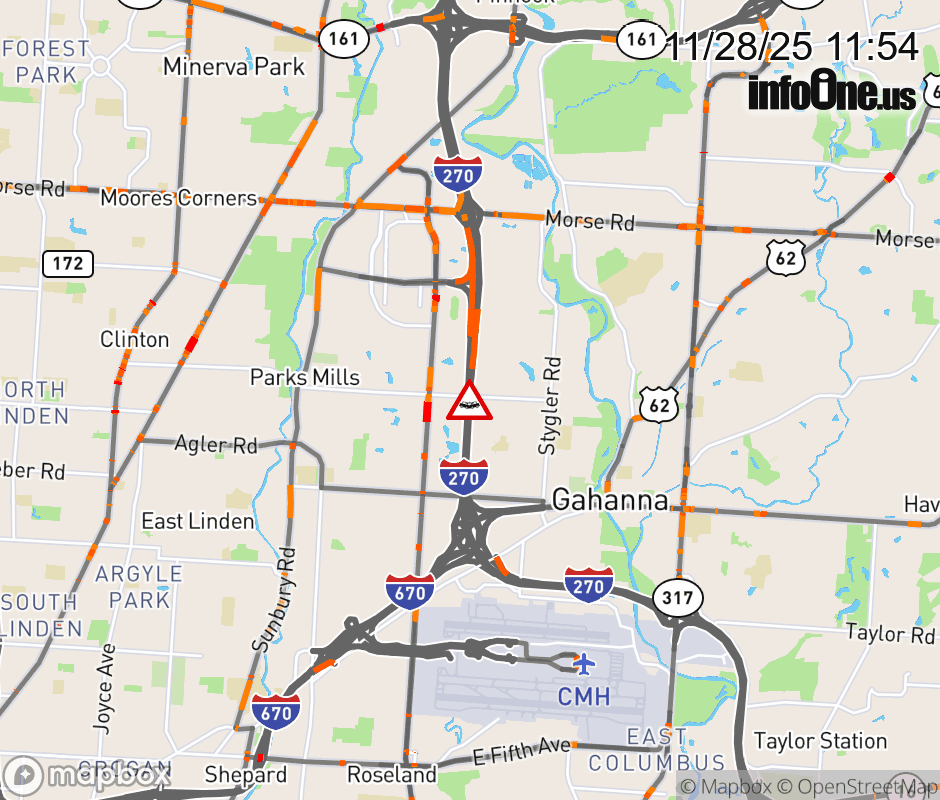 The right shoulder is blocked on I-270 North beyond US-62 East/Johnstown Rd, due to a crash. Updated: Fri 11/28/25 11:54 AM EST ![]() Updated: Fri 11/28/25 11:54 AM EST |