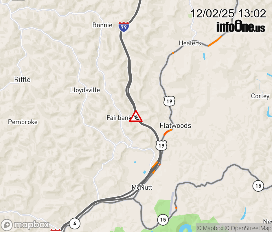 Vehicle Fire on I-79S at Mile Marker 69.0. Updated: Tue 12/2/25 1:02 PM EST ![]() Updated: Tue 12/2/25 1:02 PM EST |