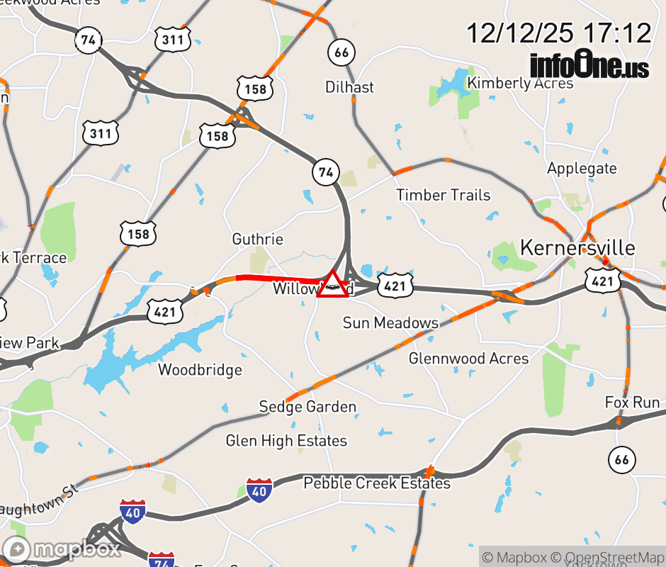 The right lane is closed 1 mile before Exit 227 (NC-74). Updated: Fri 12/12/25 5:12 PM EST ![]() Updated: Fri 12/12/25 5:12 PM EST |