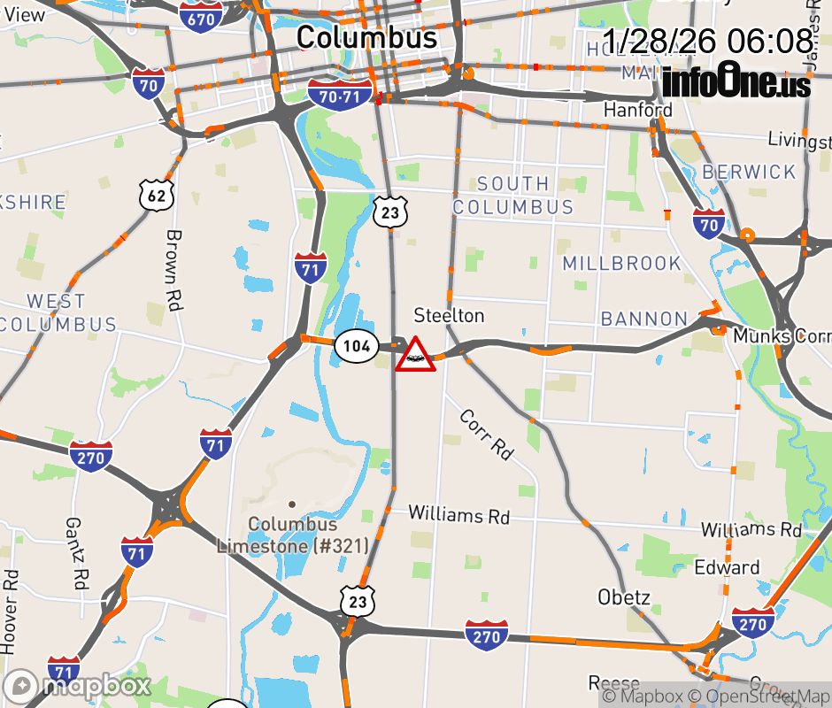 Expect lane closures on SR-104 West at US-23/High St, due to a crash. ![]() |
