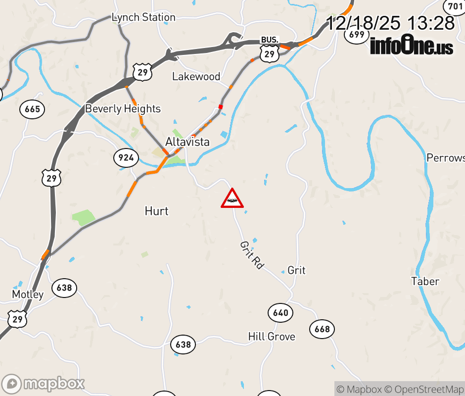 On Rt. 668 North in the County of Pittsylvania, in the vicinity of Clover Rd; Rt. 633N/S (Pittsylvania County), motorists can expect delays due to a vehicle crash. Lane closures exist. ![]() |