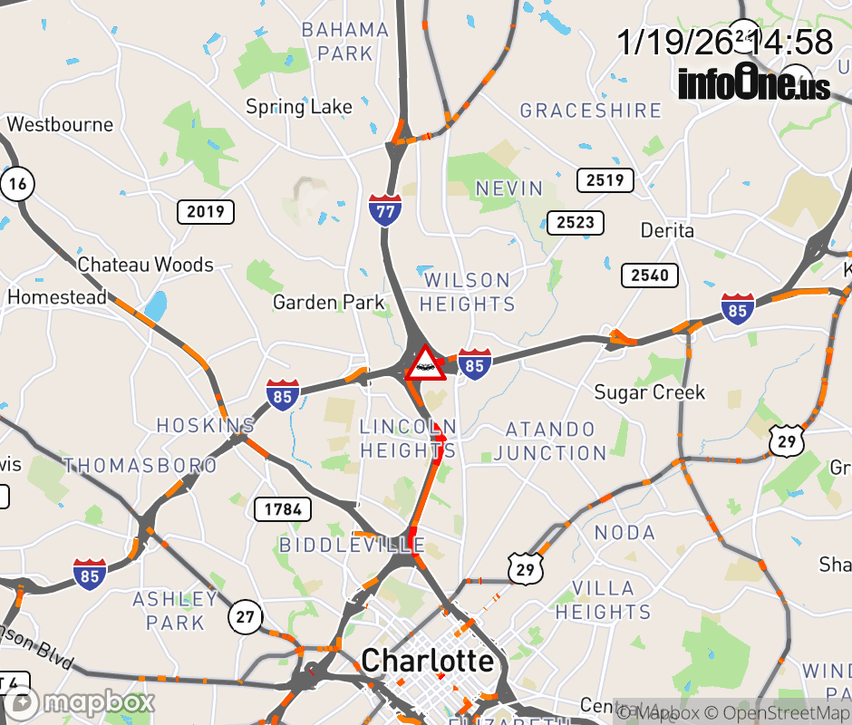 The right lane is closed at Exit 39 (Statesville Ave.). Updated: Mon 1/19/26 2:58 PM EST ![]() Updated: Mon 1/19/26 2:58 PM EST |