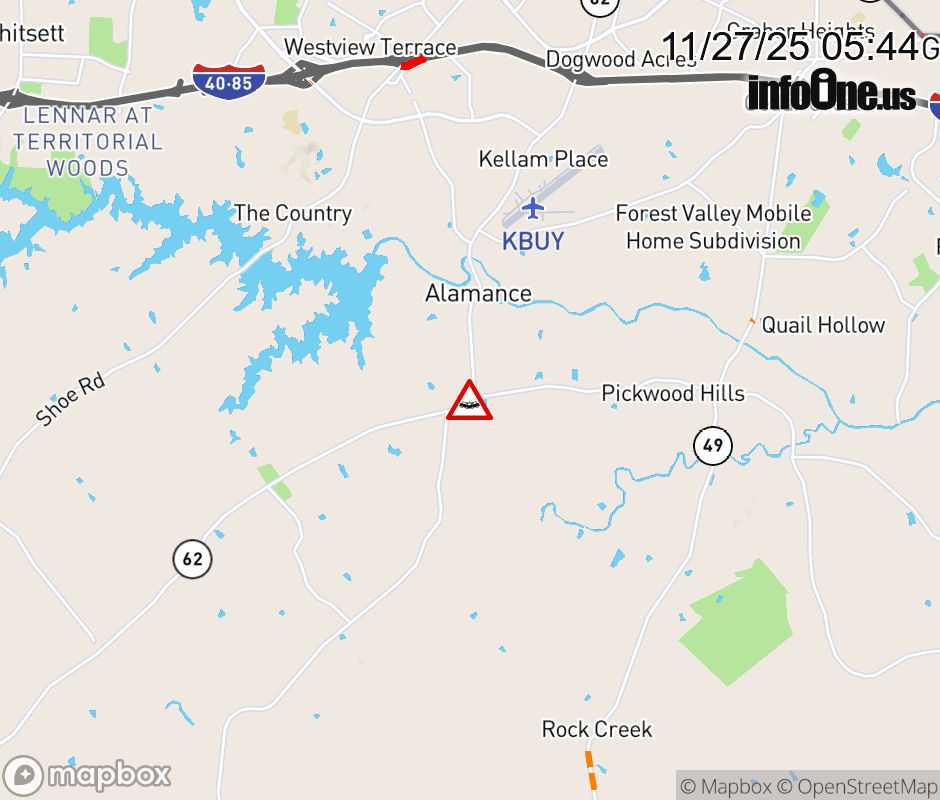 Canceled 11/27/25 7:26 AM Location: Alamance Rd (NC-62), NC Vehicle Crash.