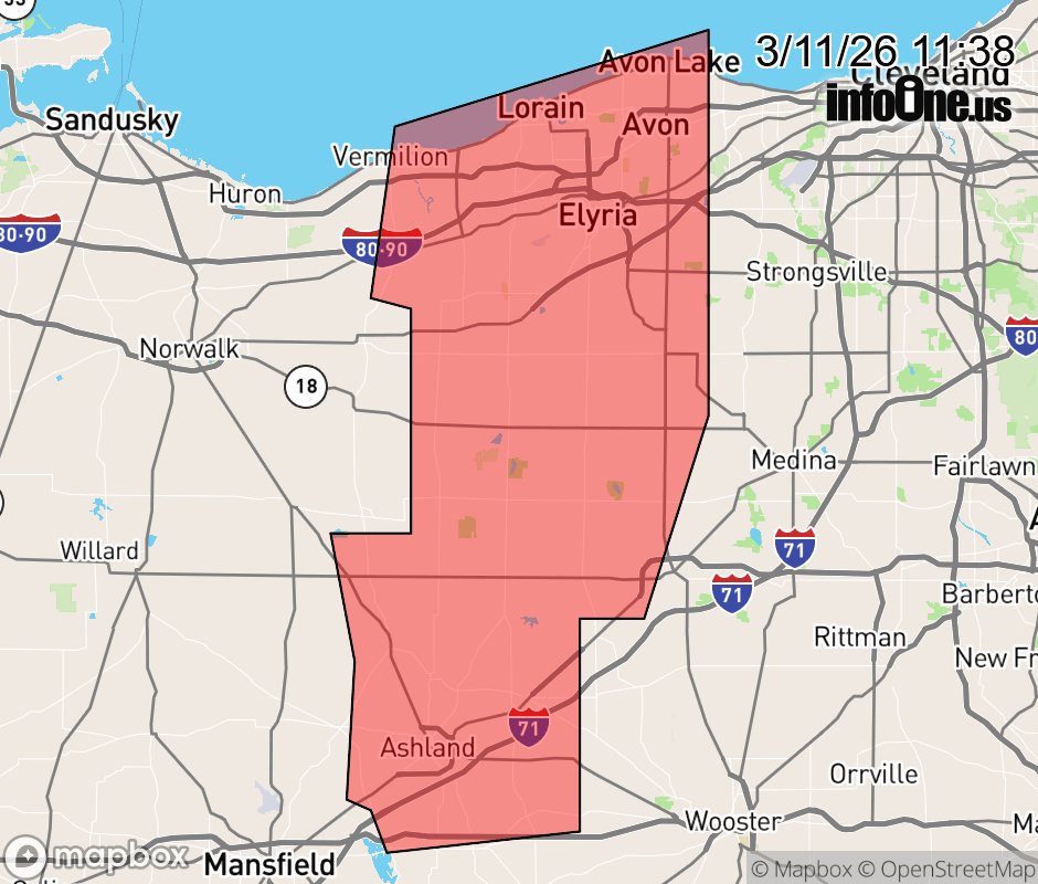Canceled 3/11/26 12:30 PM Severe Thunderstorm Warning issued March 11 at 11:37AM EDT until March 11 at 12:30PM EDT by NWS Cleveland OH SVRCLE The National Weather Service in Cleveland has issued a * Severe Thunderstorm Warning for... Erie County in north central Ohio... Southwestern Medina County in northeastern Ohio... Ashland County in north central Ohio... Lorain County in north central Ohio... * Until 1230 PM EDT. * At 1137 AM EDT, severe thunderstorms were located along a line extending from Vermilion to near New London to 8 miles west of Savannah, moving northeast at 65 mph. HAZARD...70 mph wind gusts. SOURCE...Radar indicated. IMPACT...Expect considerable tree damage. Damage is likely to mobile homes, roofs, and outbuildings. * Locations impacted include... Lorain, Elyria, Ashland, Western Vermilion, Vermilion, North Ridgeville, Avon Lake, Amherst, Grafton, Wellington, Lodi, New London, Hayesville, Savannah, Polk, Avon, Sheffield Lake, Eaton, Oberlin, and Sheffield. ![]() |