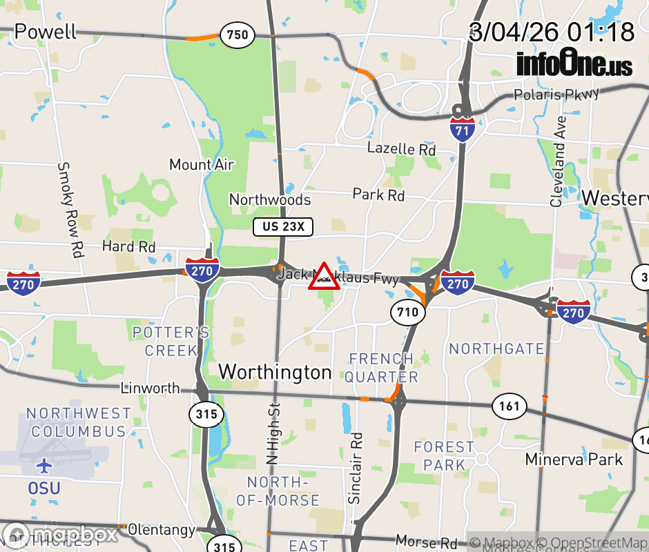 The right shoulder is blocked on Ramp US-23 North to I-270 East, due to a disabled vehicle. ![]() |