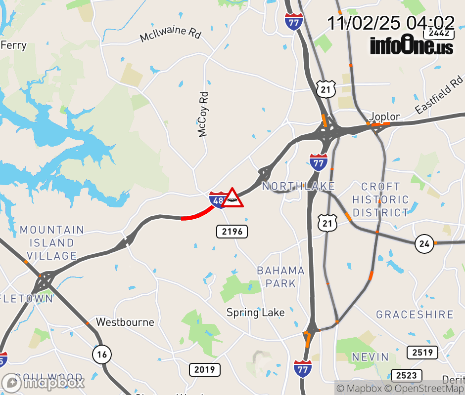 The right lane is closed before Exit 21 (W.W.T. Harris Blvd). Updated: Sun 11/2/25 4:02 AM EST ![]() Updated: Sun 11/2/25 4:02 AM EST |