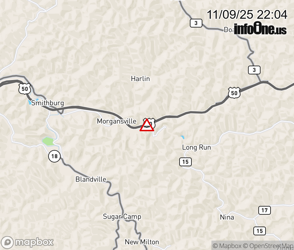 Vehicle Crash on US-50W (Northwestern Turnpike) & CR-15 (Long Run Road. Updated: Sun 11/9/25 10:04 PM EST ![]() Updated: Sun 11/9/25 10:04 PM EST |