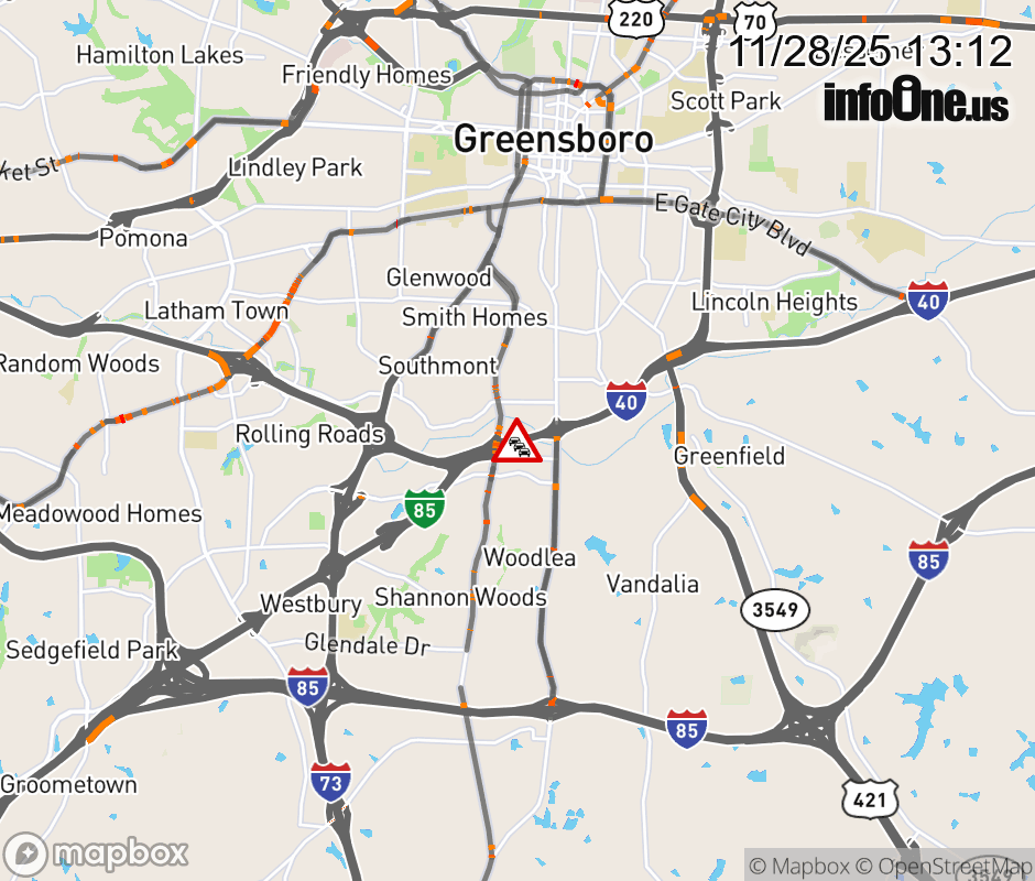 The left lane is closed at Exit 220 (Randleman Road). ![]() |