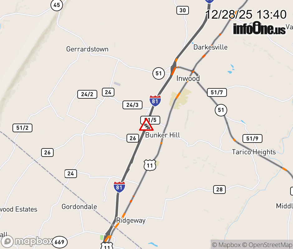 Vehicle Fire on I-81S at Mile Marker 3.1. Updated: Sun 12/28/25 1:40 PM EST ![]() Updated: Sun 12/28/25 1:40 PM EST |