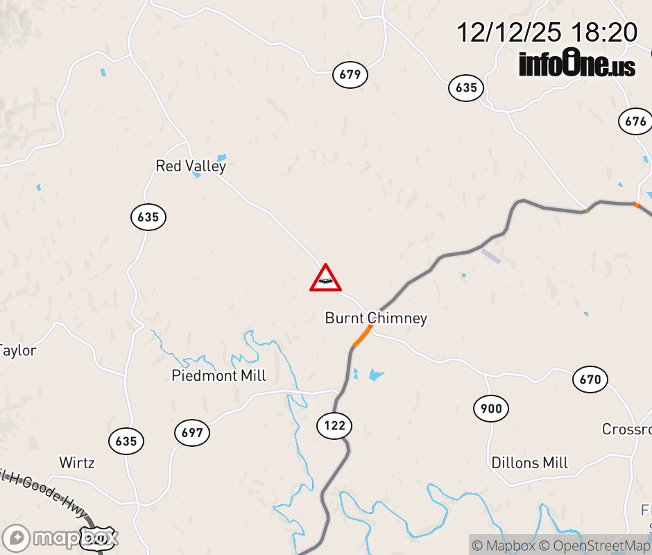 On VA-116 North in the County of Franklin, in the vicinity of Landmark Rd; Rt. 972N/S (Franklin County), motorists can expect delays due to a vehicle crash. Lane closures exist. ![]() |