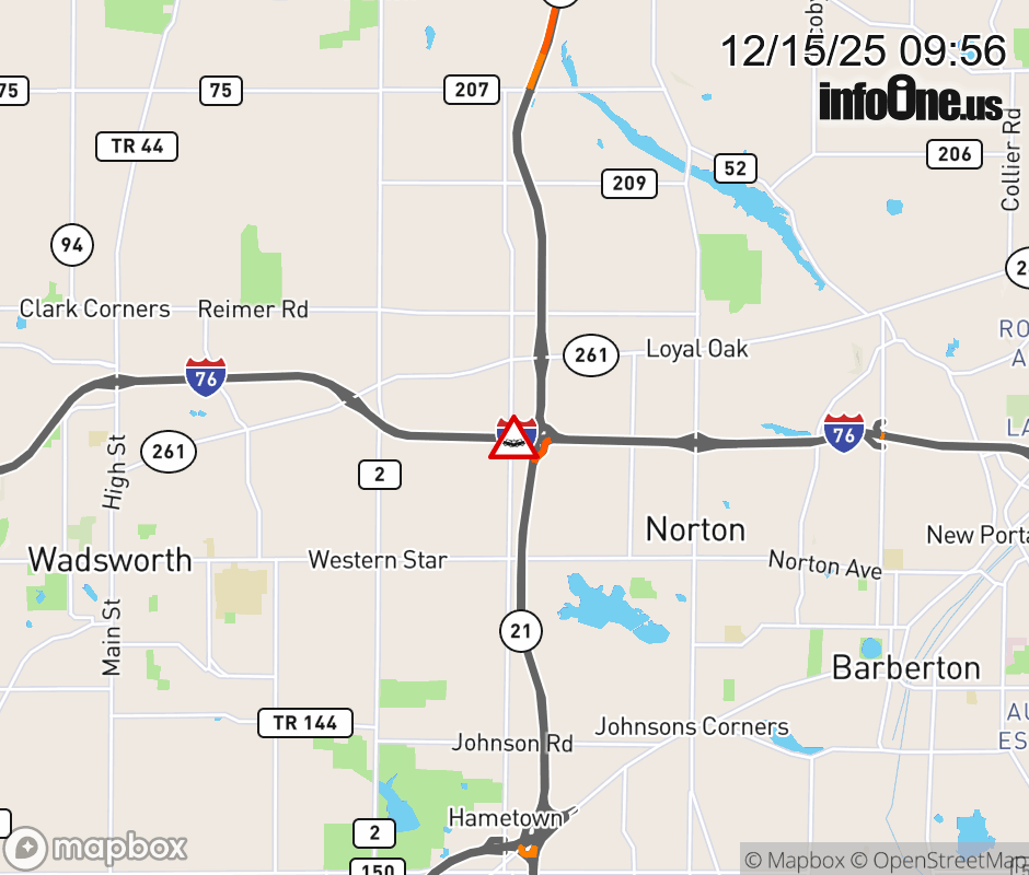 The right shoulder is blocked on I-76/US-224 West at SR-21 South, due to a crash. ![]() |