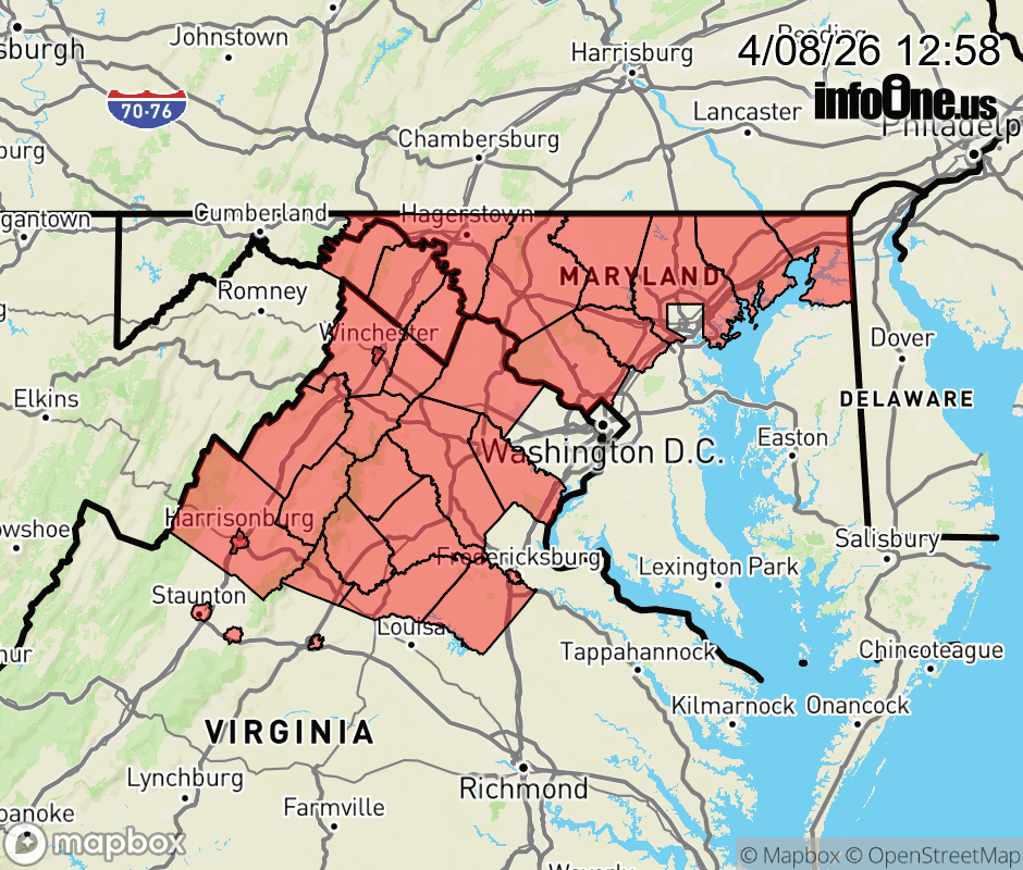 Canceled 4/8/26 8:39 PM Freeze Warning issued April 8 at 12:57PM EDT until April 9 at 9:00AM EDT by NWS Baltimore MD/Washington DC * WHAT... Sub-freezing temperatures in the upper 20s to lower 30s expected. * WHERE... Portions of northern Maryland, central and northern Virginia, and the eastern panhandle of West Virginia. * WHEN... From midnight tonight to 9 AM EDT Thursday. * IMPACTS... Frost and freeze conditions could kill crops, other sensitive vegetation and possibly damage unprotected outdoor plumbing. ![]() |