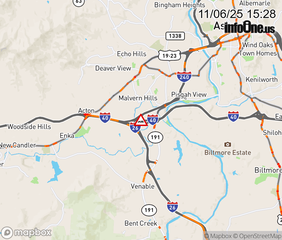 The right lane is closed prior to Exit 46A, I-26 East. ![]() |