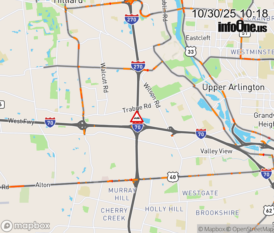 The right shoulder is blocked on I-270 South beyond I-70, due to a disabled vehicle. Updated: Thu 10/30/25 10:18 AM EDT ![]() |
