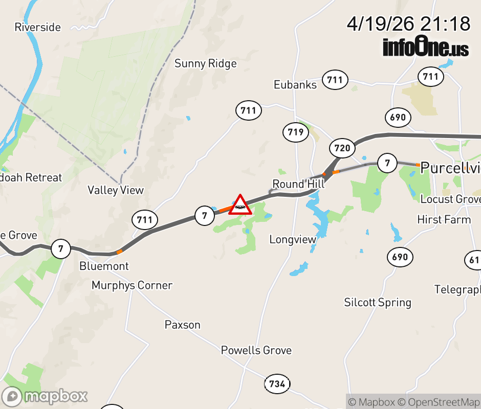 On VA-7 in the County of Loudoun, in the vicinity of Harry Byrd Hwy; Rt. 1330N/S (Loudoun County), motorists can expect delays due to a vehicle crash. The west left shoulder and left lane are closed. Updated: Sun 4/19/26 9:18 PM EDT ![]() Updated: Sun 4/19/26 9:18 PM EDT |