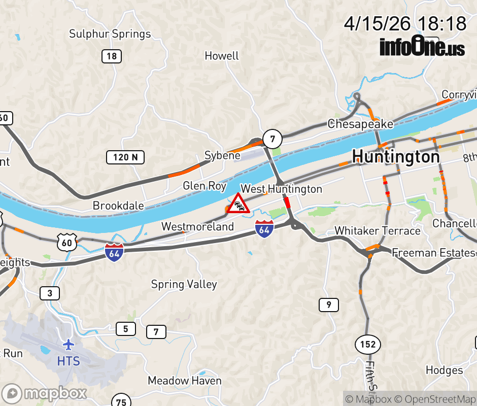 Pot hole Bridge on US-60 (Adams Ave.) & 28th Street W . The northbound right lane is closed. Updated: Wed 4/15/26 6:18 PM EDT ![]() |