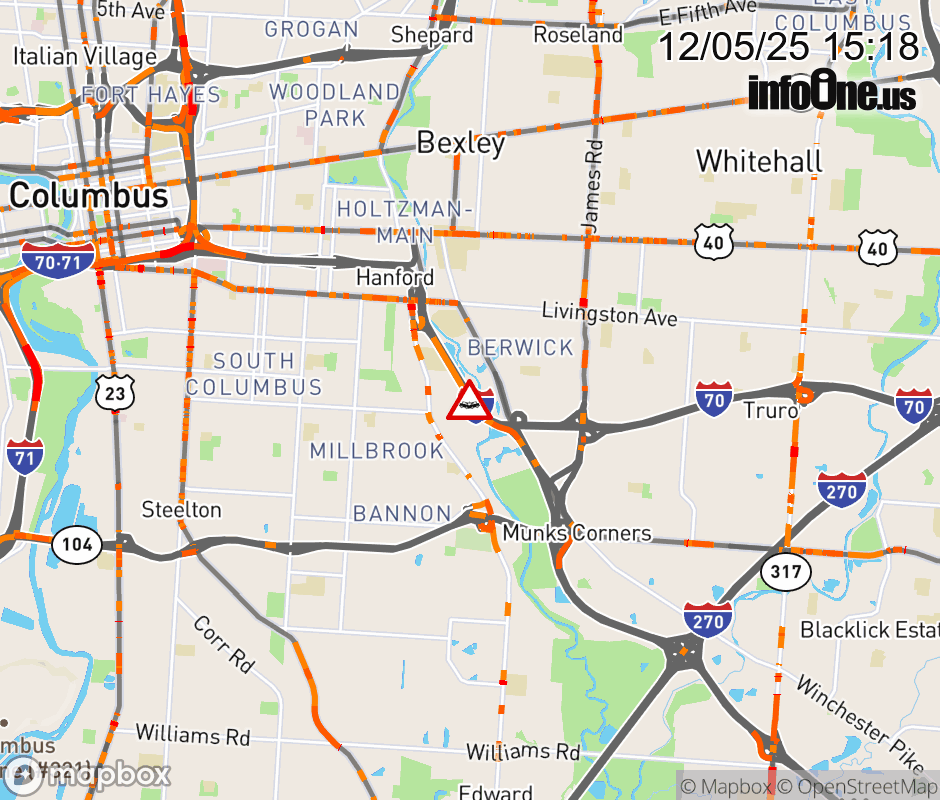 The right shoulder is blocked on I-70 East beyond Alum Creek Dr/Livingston Ave, due to a crash. ![]() |