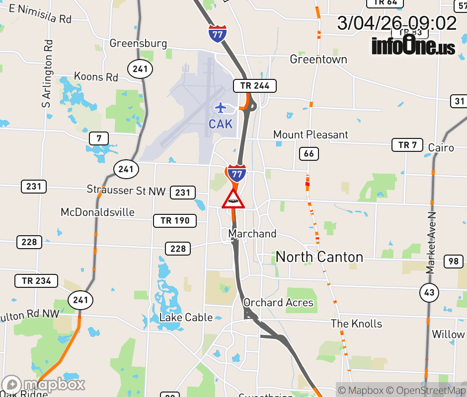 Canceled 3/4/26 9:14 AM Location: I-77 South at MM 112.4, OH Accident.