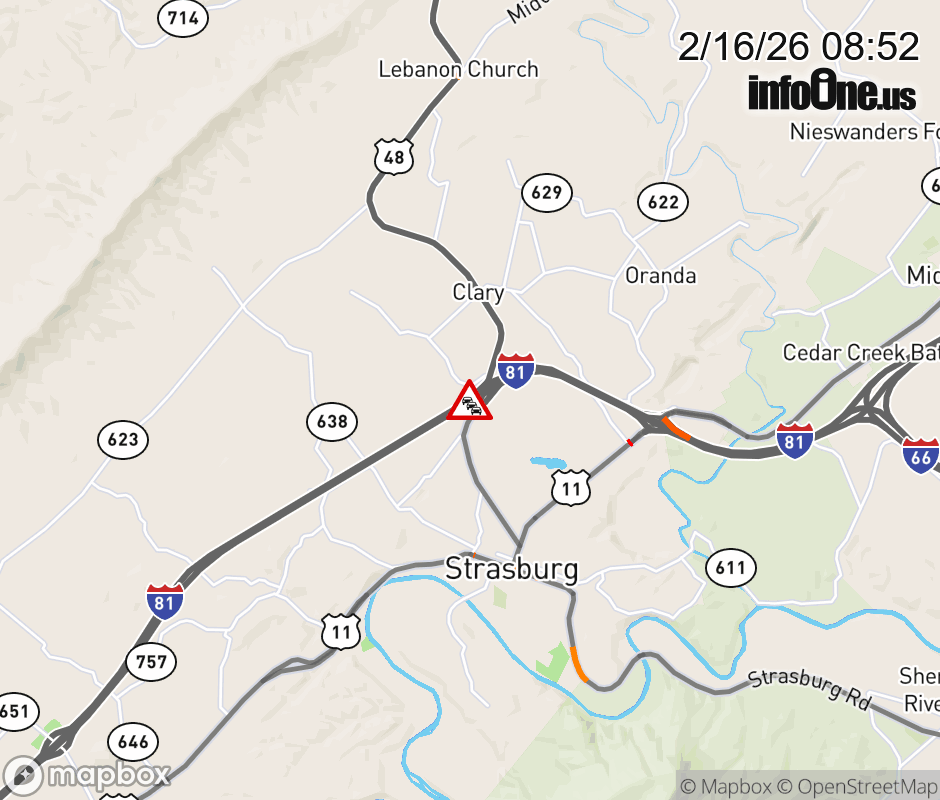 On I-81 South at mile marker 296.4 in the County of Shenandoah, motorists can expect delays due to a vehicle fire. Updated: Mon 2/16/26 8:52 AM EST ![]() Updated: Mon 2/16/26 8:52 AM EST |