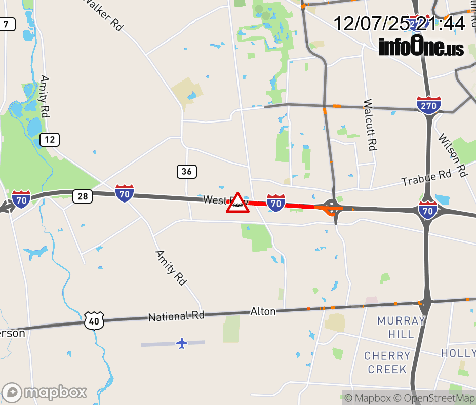 The left lane is blocked on I-70 East beyond SR-142/Plain City, due to a crash. ![]() |