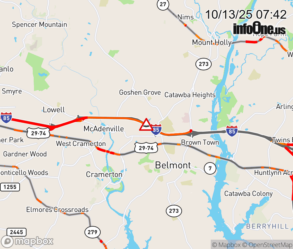 The left lane is closed past Exit 26 (Belmont - Mt Holly Rd). ![]() |