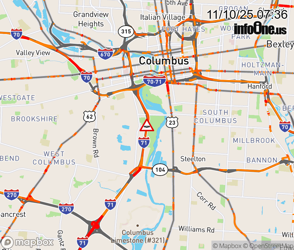 The left shoulder is blocked on I-71 South beyond Greenlawn Ave, due to a crash. Updated: Mon 11/10/25 7:36 AM EST ![]() Updated: Mon 11/10/25 7:36 AM EST |
