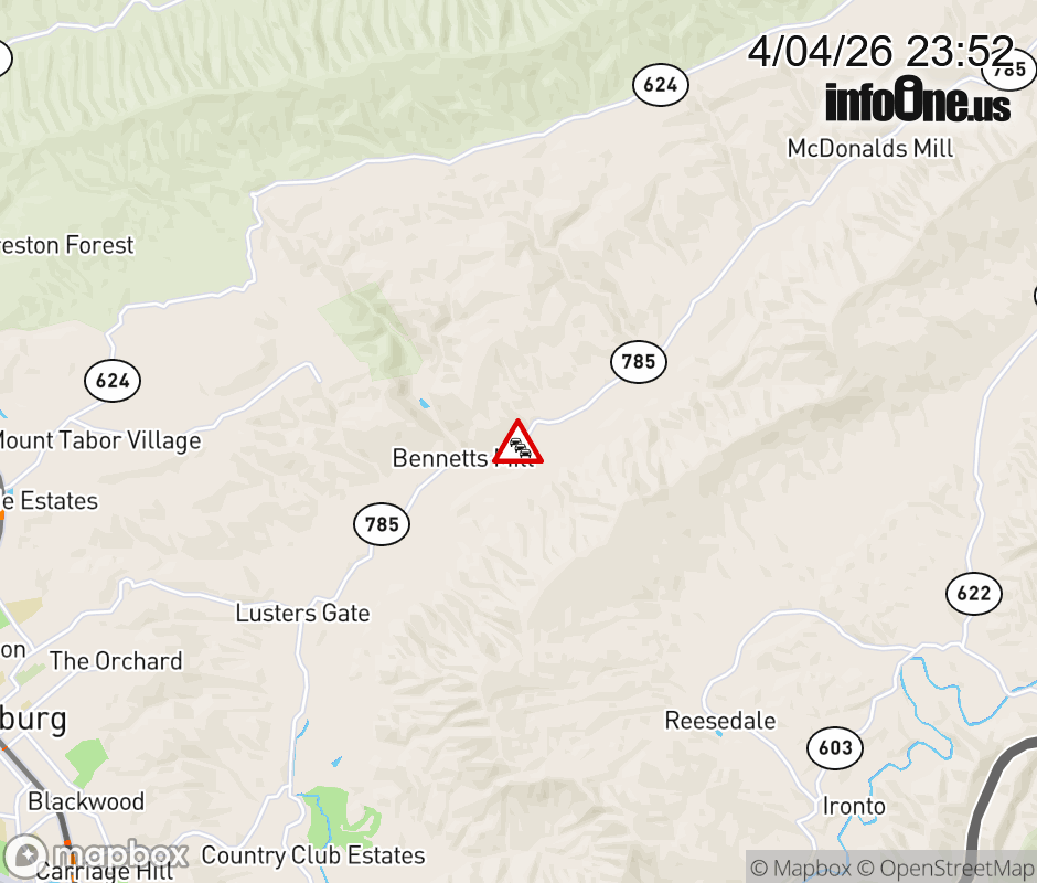 On Rt. 785 in the County of Montgomery, in the vicinity of Mossy Spring Rd; Rt. 804N/S (Montgomery County), motorists can expect delays due to weather. All east lanes are closed. All west lanes are closed. Updated: Sat 4/4/26 11:52 PM EDT ![]() Updated: Sat 4/4/26 11:52 PM EDT |
