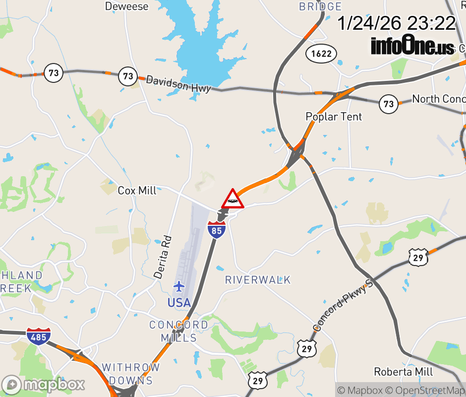 The right lane is closed near Exit 52 (Poplar Tent Road). Updated: Sat 1/24/26 11:22 PM EST ![]() Updated: Sat 1/24/26 11:22 PM EST |