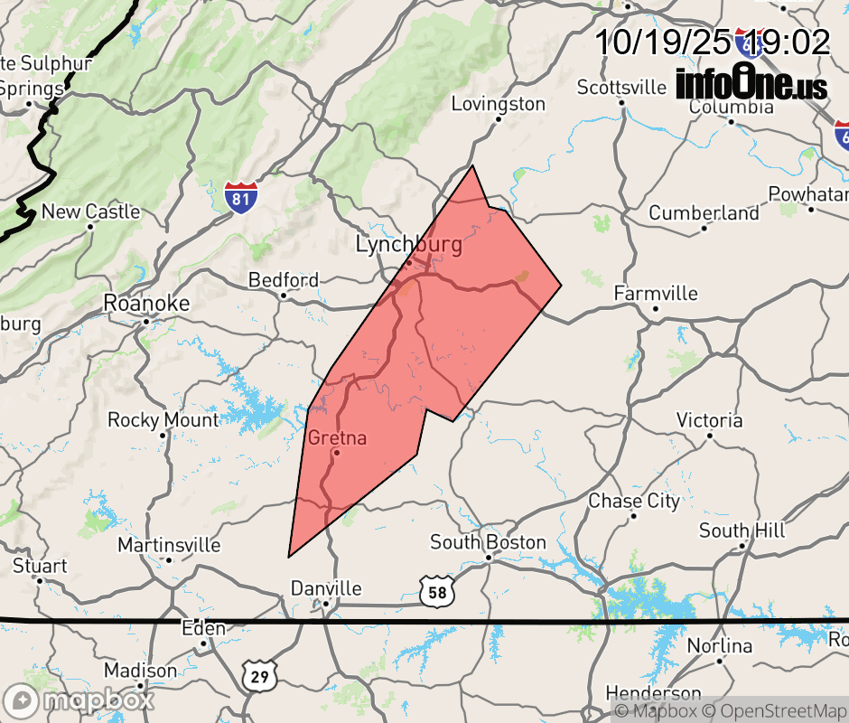 Canceled 10/19/25 7:30 PM Special Weather Statement issued October 19 at 7:00PM EDT by NWS Blacksburg VA At 700 PM EDT, Doppler radar was tracking strong thunderstorms along a line extending from near Riverville to near Hodges to near Gretna. Movement was northeast at 40 mph. HAZARD...Wind gusts up to 40 mph. SOURCE...Radar indicated. IMPACT...Gusty winds could knock down tree limbs and blow around unsecured objects. Locations impacted include... Lynchburg... Altavista... Appomattox... Hurt... Chatham... Gretna... and Mt Airy. ![]() |