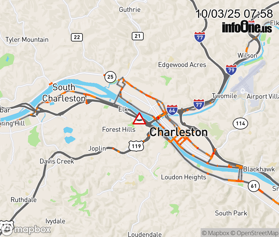 In Kanawha County there is a Vehicle Crash on I-64W at Mile Marker 57.18. ![]() |