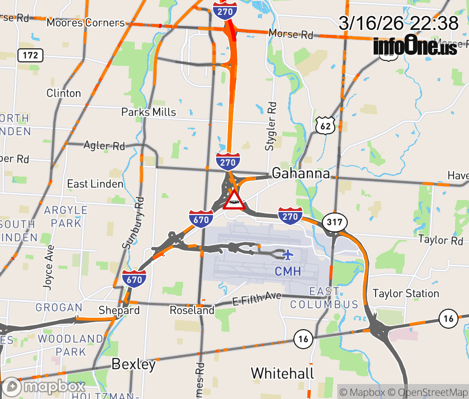 Ramp I-270 North to I-670/US-62 West CLOSED because of a crash. ![]() |