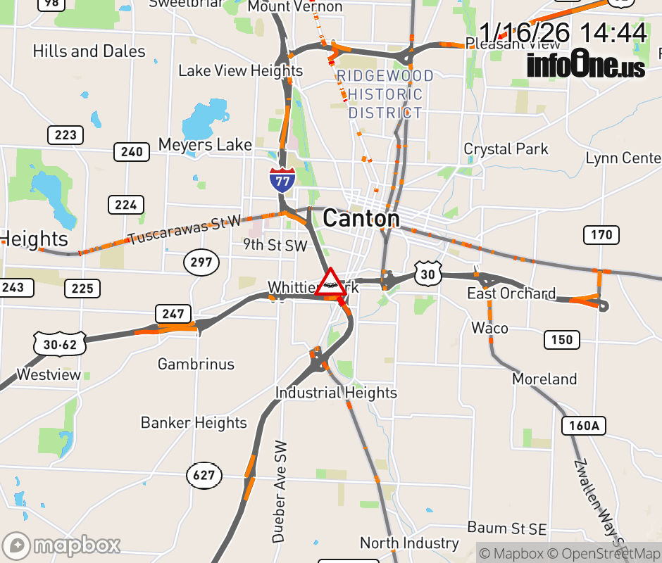 The right lane is blocked on I-77 North/US-62 East at US-30, due to a crash. ![]() |