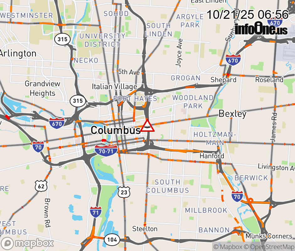 The right lane is blocked on I-71 South at US-40/Broad St, due to a crash. Updated: Tue 10/21/25 6:56 AM EDT ![]() Updated: Tue 10/21/25 6:56 AM EDT |