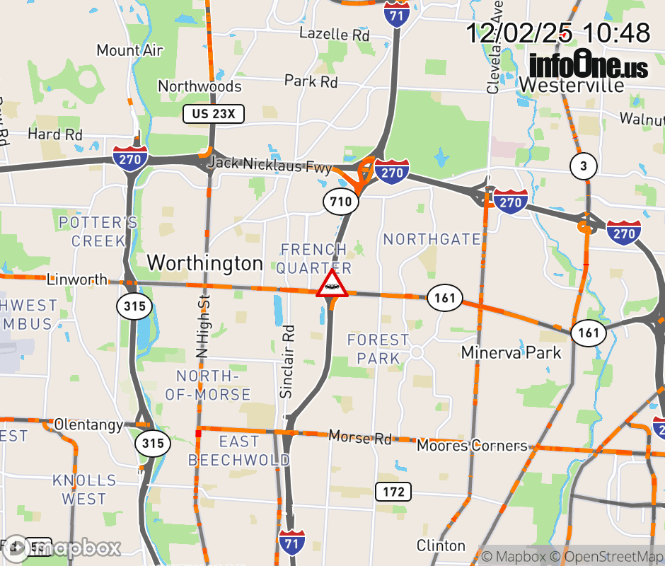 The center lane is blocked on I-71 North beyond SR-161/Dublin Granville Rd, due to a crash. ![]() |