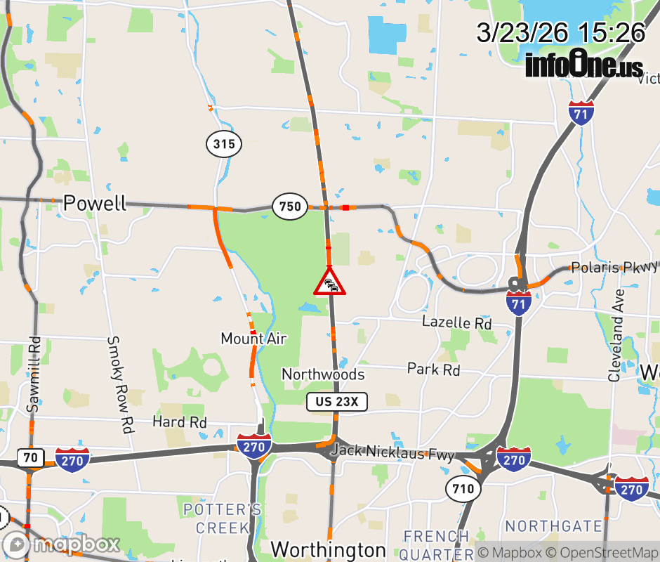 The right lane is blocked on US-23 South at Olentangy Meadow Dr, due to repairs/maintenance. ![]() |
