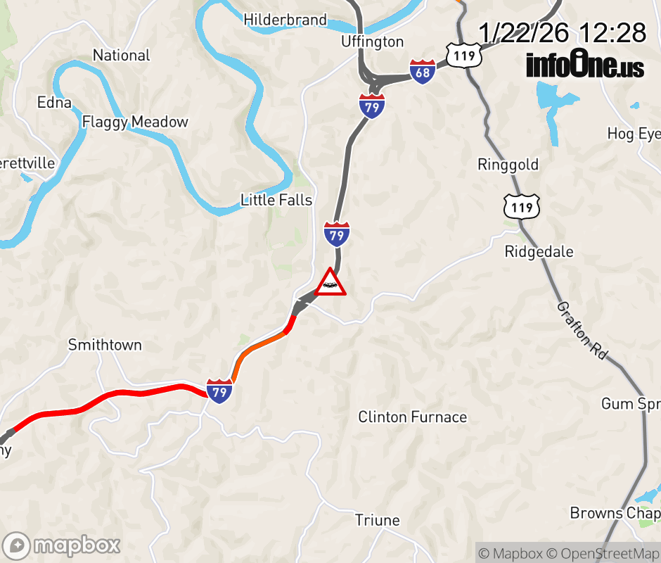 Multi-Veh Crash on I-79N at Mile Marker 146.0. The northbound right lane is closed. Updated: Thu 1/22/26 12:28 PM EST ![]() Updated: Thu 1/22/26 12:28 PM EST |