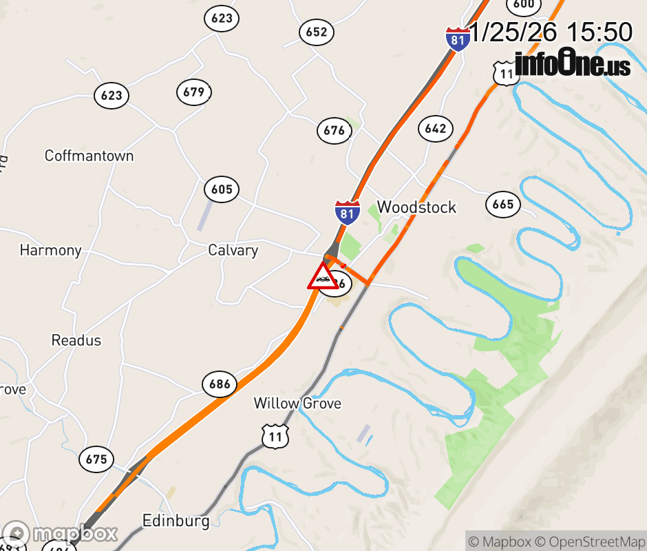 On I-81 at mile marker 283 in the County of Shenandoah, motorists can expect delays due to a disabled tractor trailer. All north lanes are closed. ![]() |